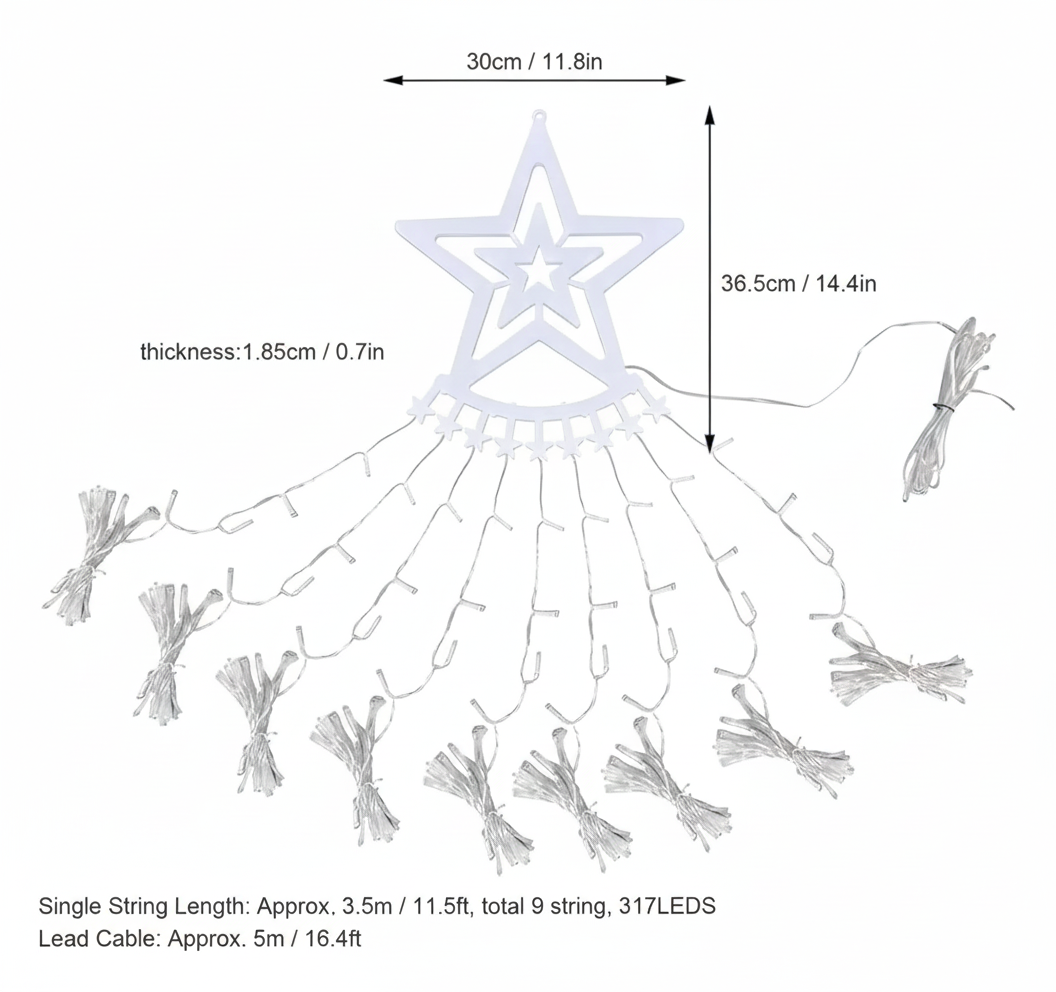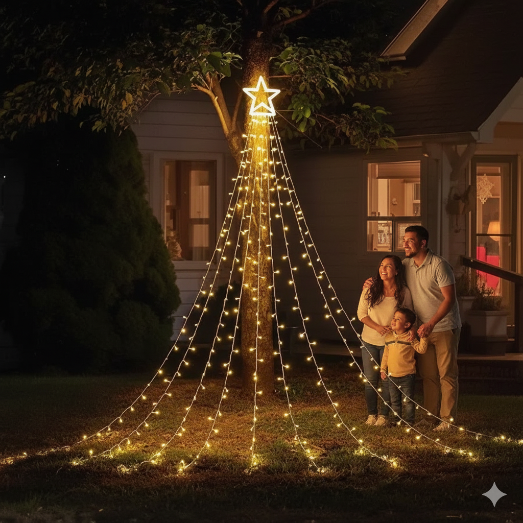 Decora tu árbol de Navidad o cualquier espacio de tu hogar, terraza o jardín con estas luces solares en cascada, ideales para crear un ambiente cálido y festivo.