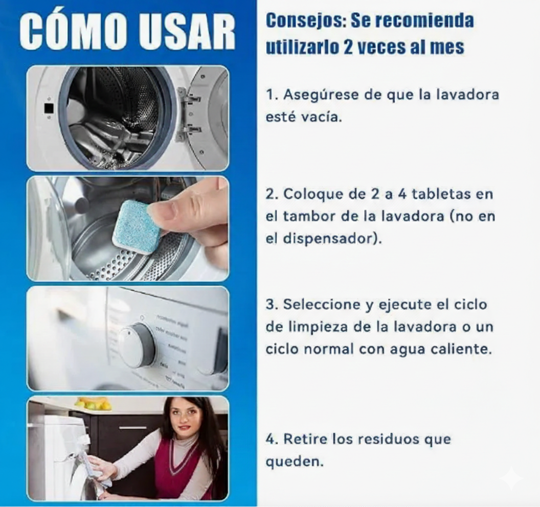 🌀 Una pastilla al mes y tu lavadora siempre como nueva.